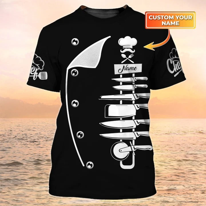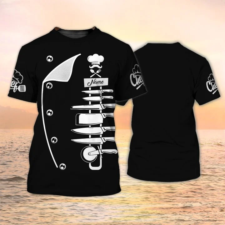 Chef T Shirts 3D Custom Name Black Shirt For Master Chef Men Women