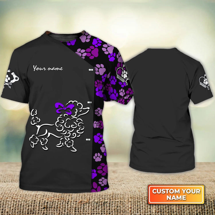 Custom Name Dog Groomer Shirt For Pet Groomer Salon Purple Bow Poodle Shirt Gift For Groomer
