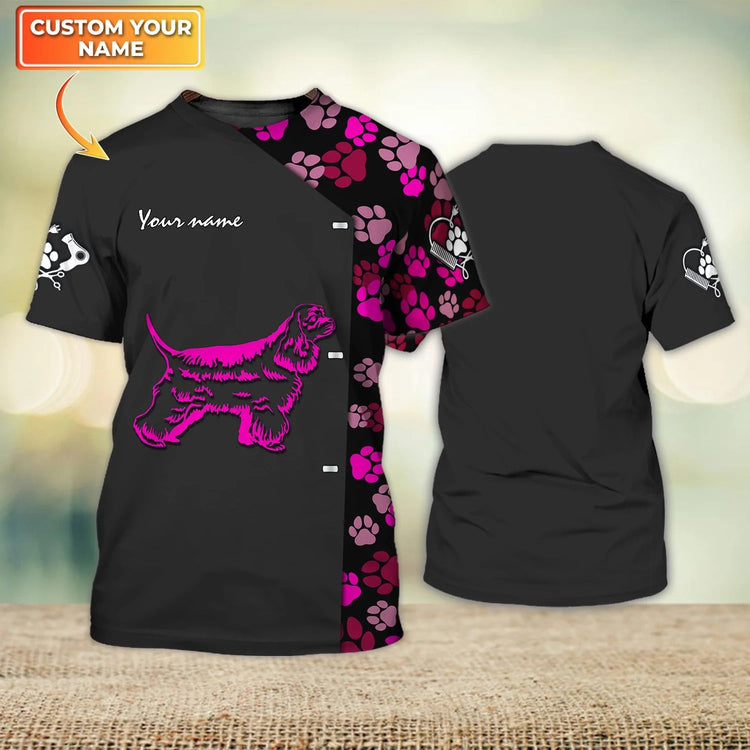 Personalized Amerikansk Cocker Spaniel Paw Dog Groomer T Shirts Pet Groomer Uniform Pink Salon Pet Shirts Coolspod