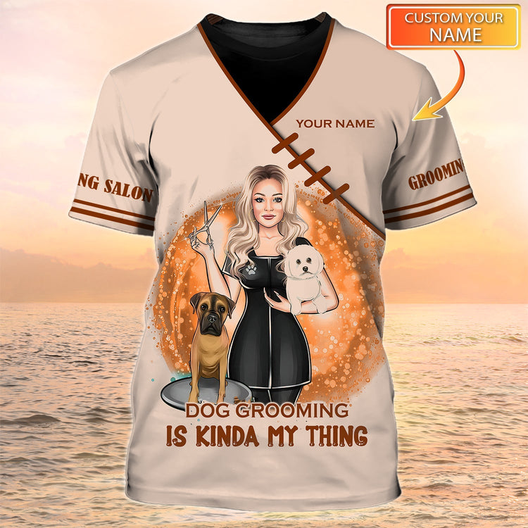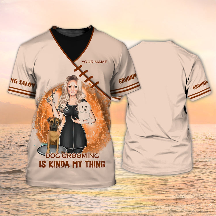 Personalized Name 3D Tshirt For A Dog Groomer Dog Grooming Is Kinda My Thing