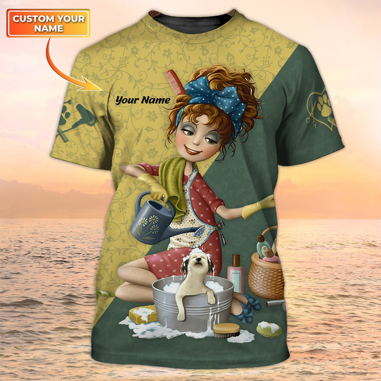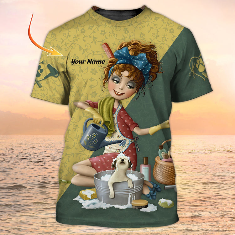 Personalized With Name Dog Groomer 3D Shirt Pet Groomer Uniform Salon Pet Gift