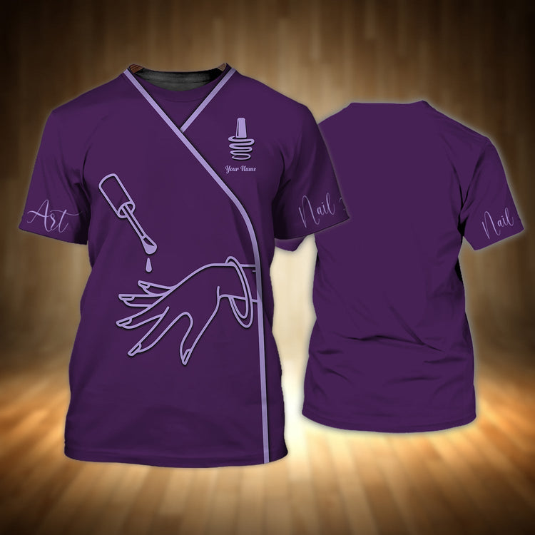 Nail Technician Personalized Custom 3D Tshirt Tad Purple Nail Tshirt