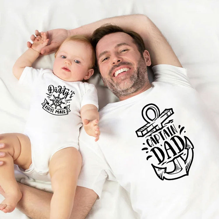 Captain And First Mate Matching Shirt Onesie Bodysuit For Father And Son Daughter, Matching Set Outfit For First Dad, New Baby