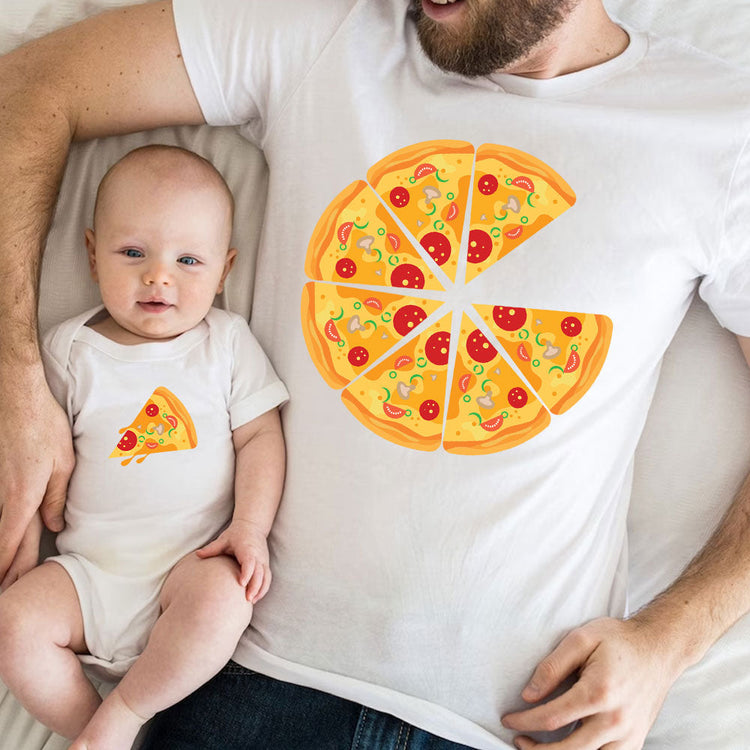 Custom Pizza Slice Baby And Dad Bodysuit, Our First Father's Day Together Baby And Dad Matching Outfit