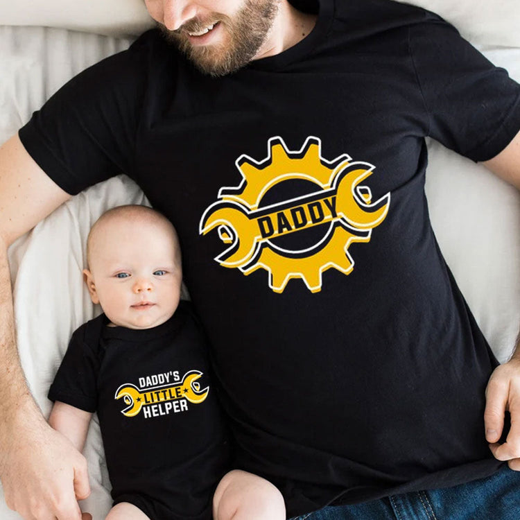 Father's Day gift for Father, Son, Daughter, Baby, Daddy and Daddy's Little Helper, Matching Mechanic T-shirt Set