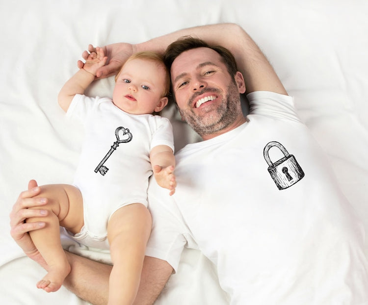Padlock and Key Dad Baby Matching Set , Gift for dad , Baby Bodysuit , matching t shirts baby grow vest shirt , baby shower gift , New Dad