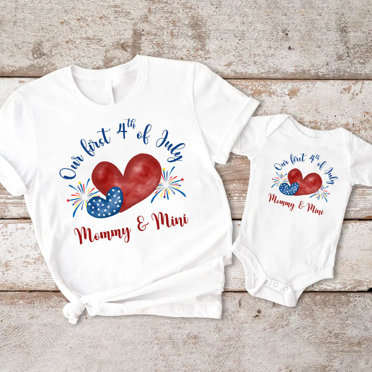 Mom And Baby With Heart Matching Outfit, Our First 4th Of July Clothing Set For Mom And Baby, 4th Of July Matching Outfit For Father And Baby, First Mom, New Mom Gift