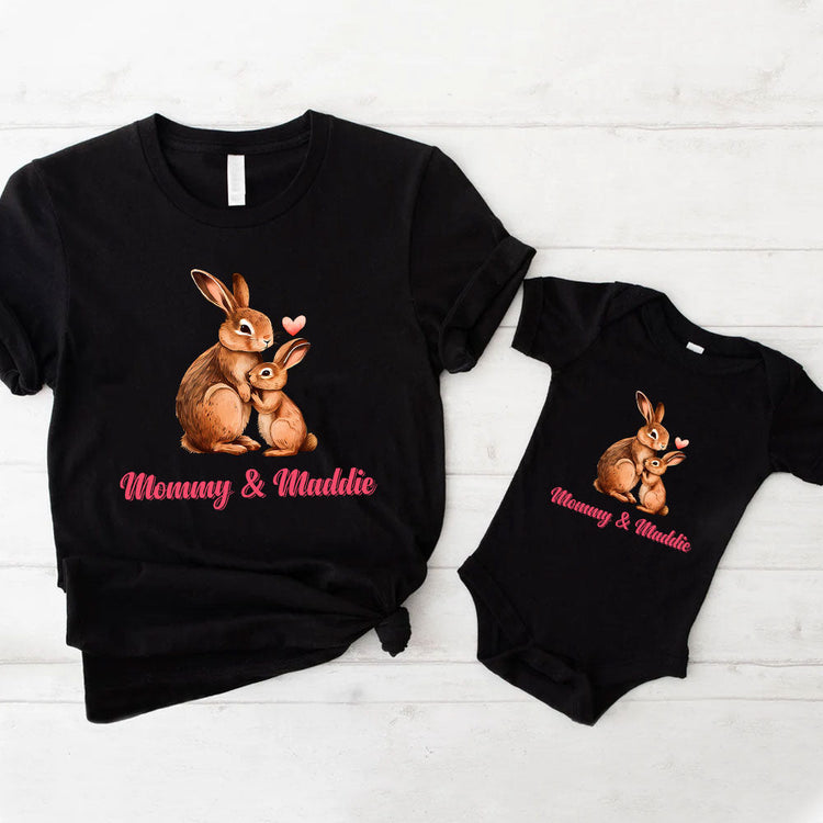 Mommy And Me Bunny Matching Outfit, Mom And Baby Daughter Son Rabbit Matching Shirt Bodysuit Custom Name, Matching Set For New Mom And Baby In First Mothers Day