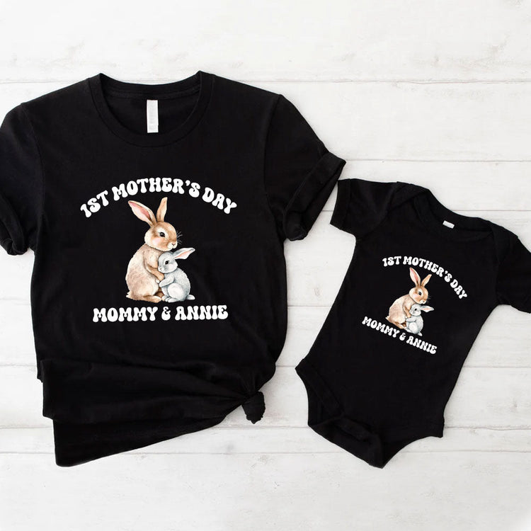 Personalized 1st Mothers Day Cute Rabbit Set Outfit Custom Name For Mom And Son Daughter, Custom Matching Outfit Mom Baby, Gift For New Mom New Baby