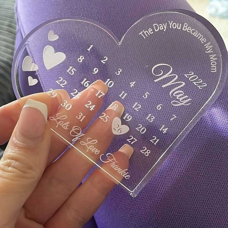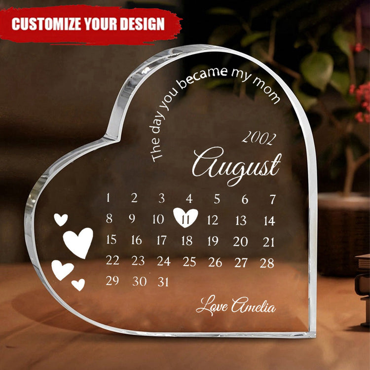 The Day You Became My Mom - Personalized Acrylic Glass Heart Shaped Plaque