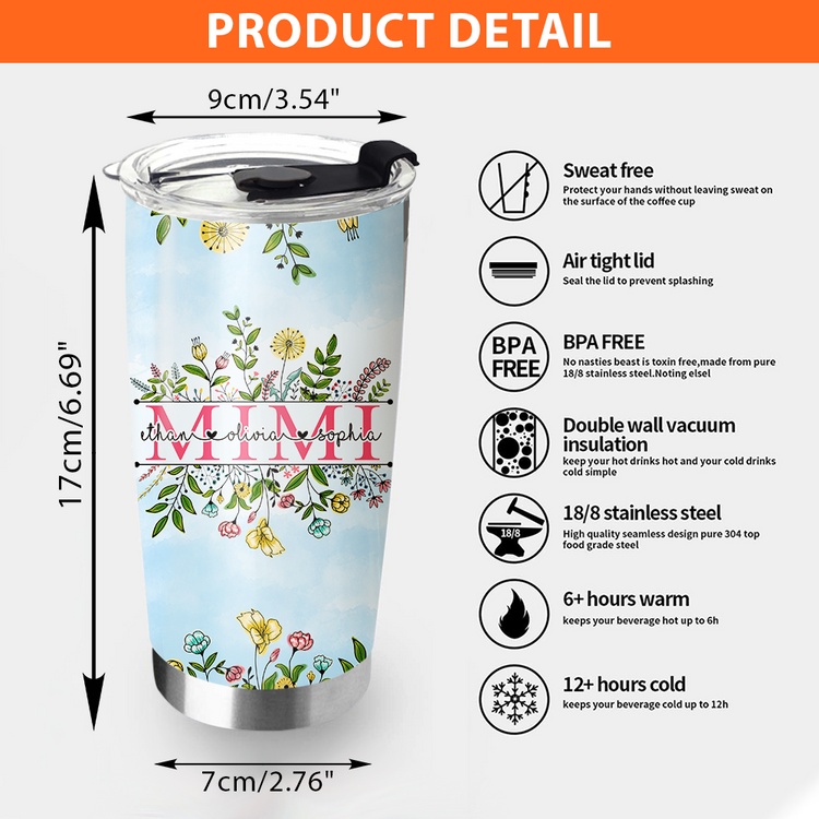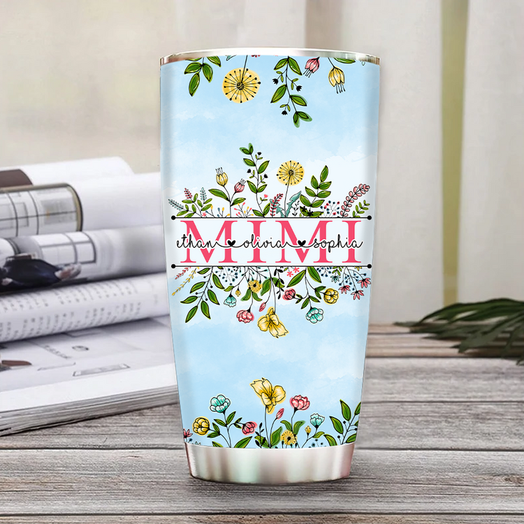 20oz Printed Wildflowers Mimi And Grandkids, Tumbler Cup with Lid, Double Wall Vacuum Thermos Insulated Travel Coffee Mug