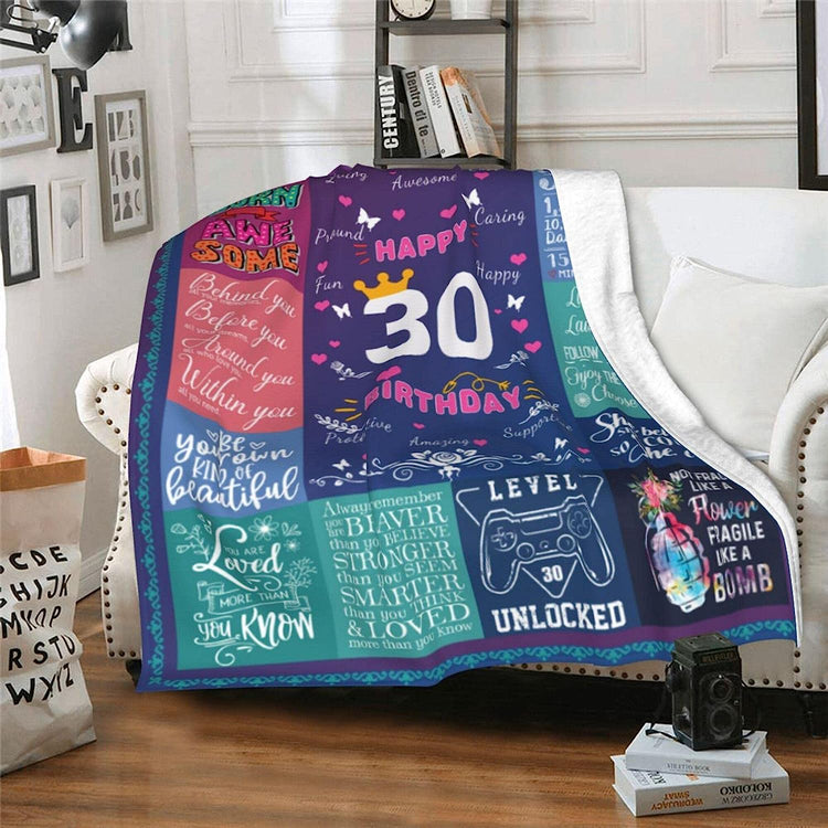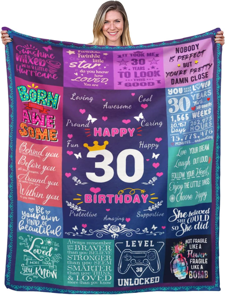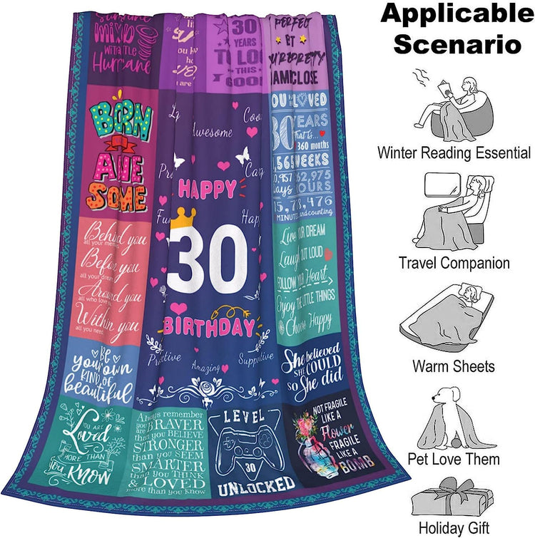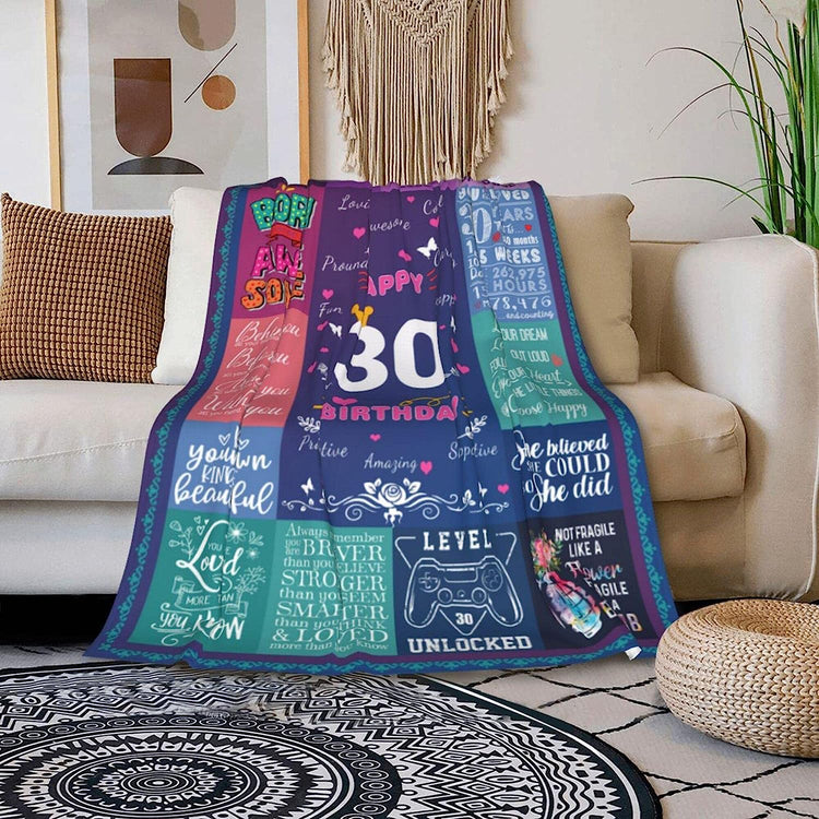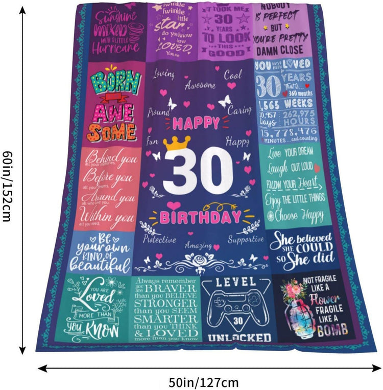 30th Birthday Blanket - Best Present for 30 Year Old Women - Birthday Decor 30th - 30 Year Old Birthday Blanket