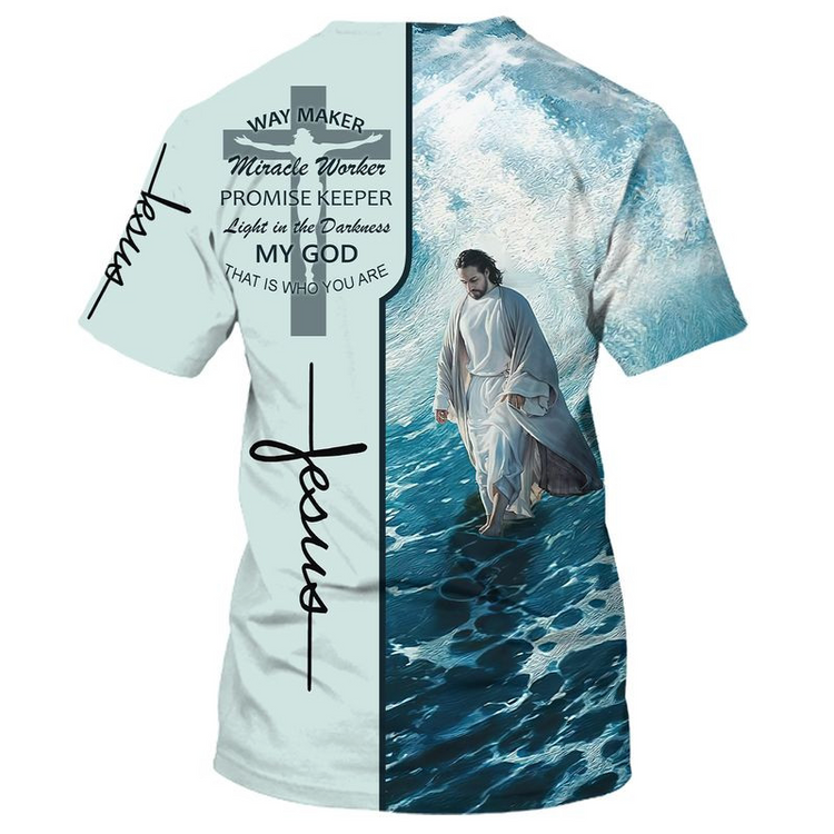 3D Jesus Walking On The Beach T Shirt Way Maker Micracle Worker Promise Keeper Shirts