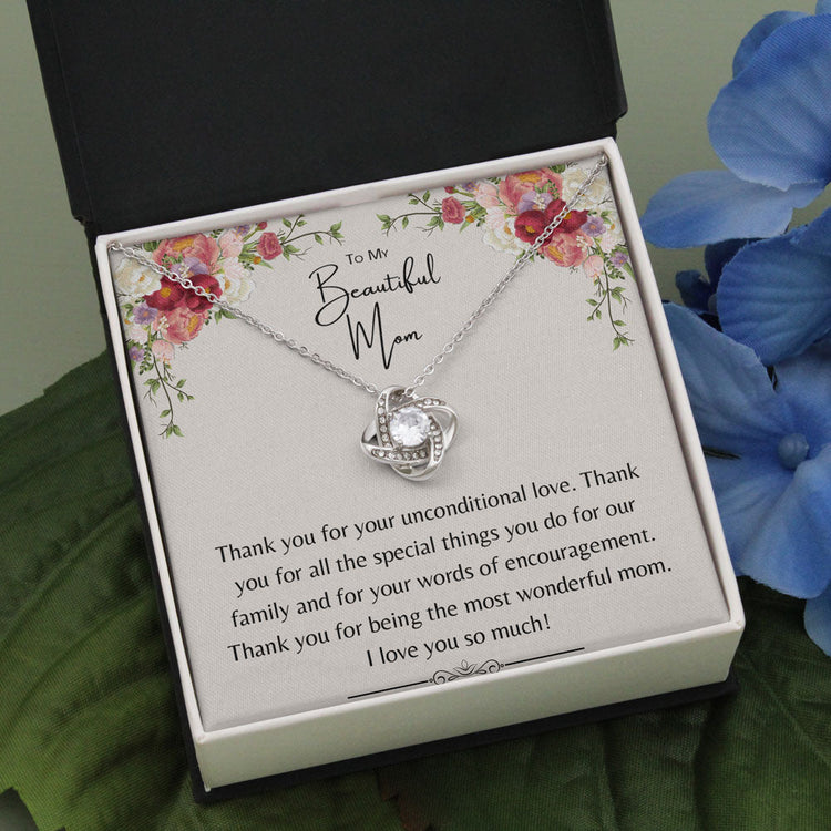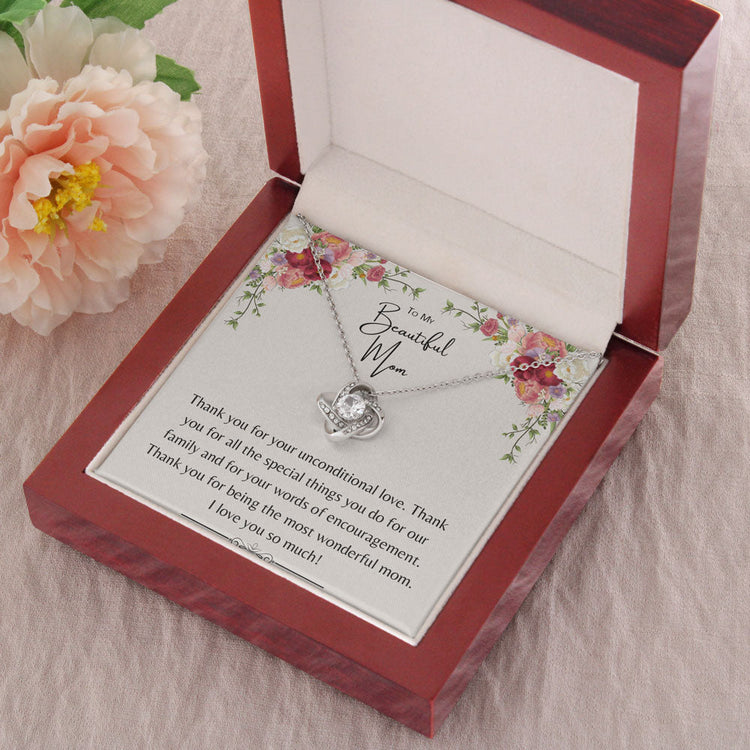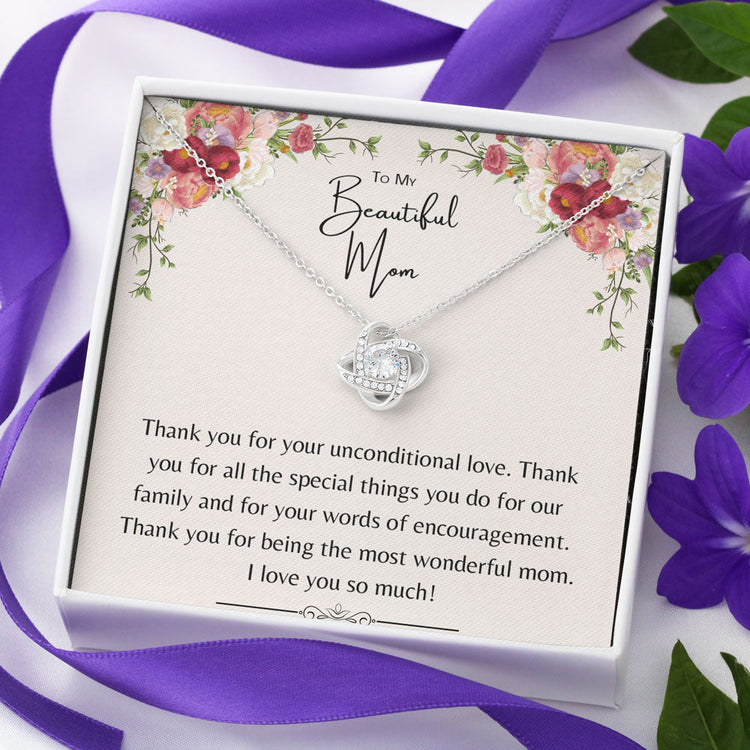 Beautiful Mom Necklace - Thank You For Being The Most Wonderful Mom, Birthday Gift, Anniversary Gift, Mother's Day Gift, Best Gift Idea for Mom, Love Knot Necklace