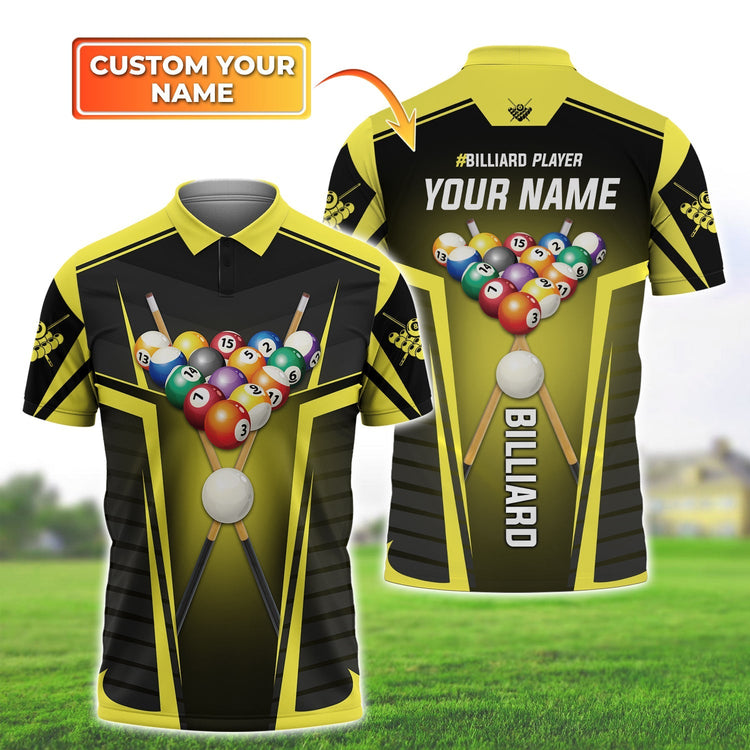 Billiard 3D Polo Shirt Yellow Personalized Name 3D Polo Shirt For Billiard Club