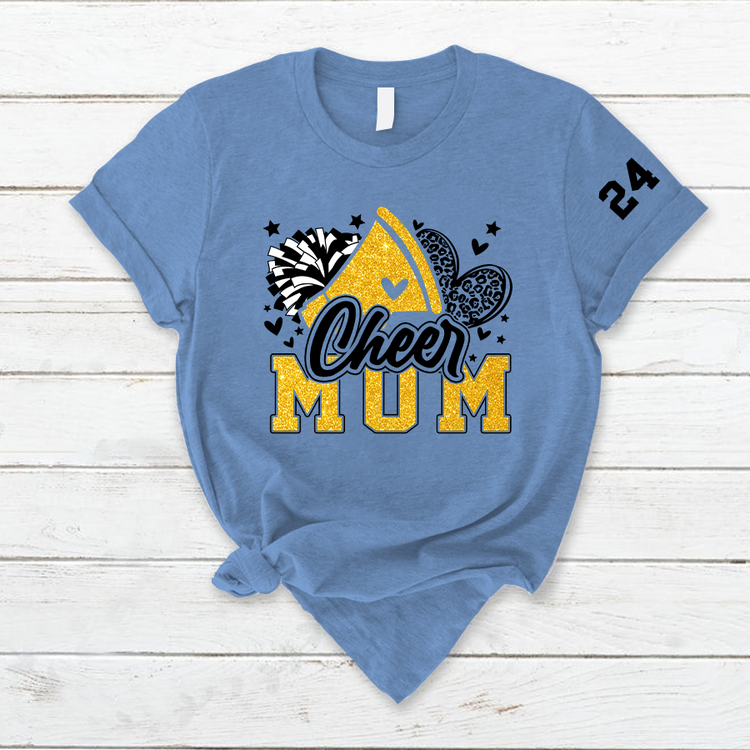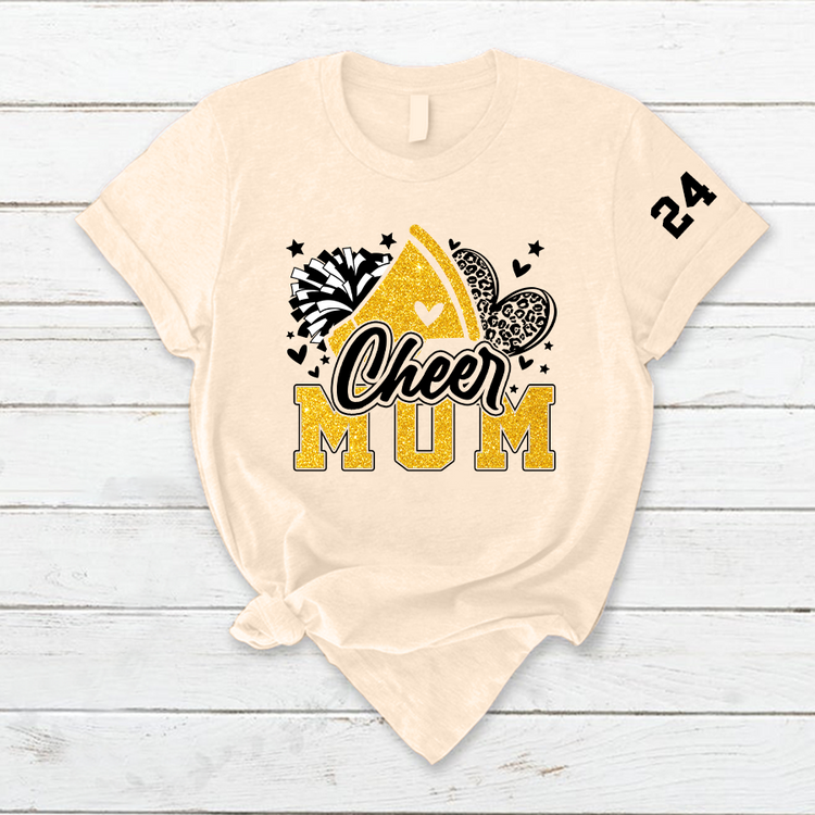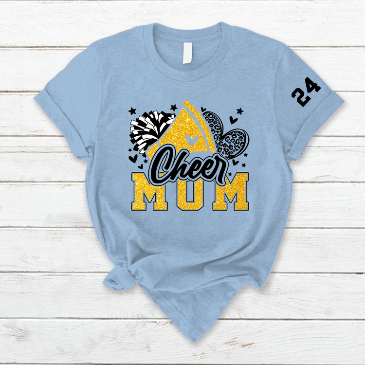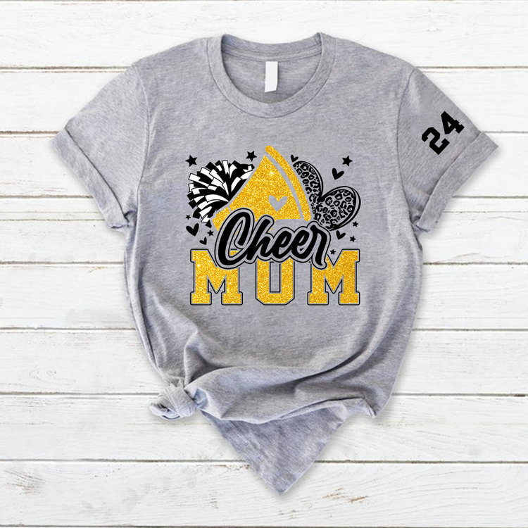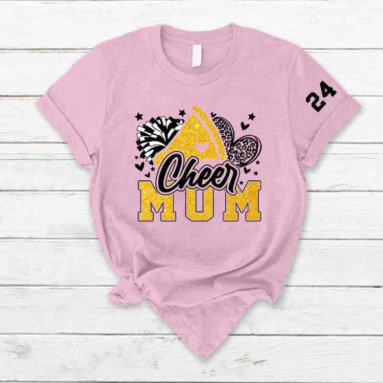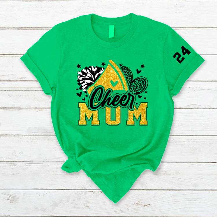 Cheer Mom Shirt, Football Leopard Print Heart Shirt, Leopard Glitter Cheerleader Shirt, Cheer T - Shirt 02