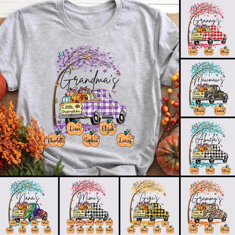 Personalized Halloween Gift for Grandma, Grandma Little Pumpkin Personalized Shirt Mug for Grandma
