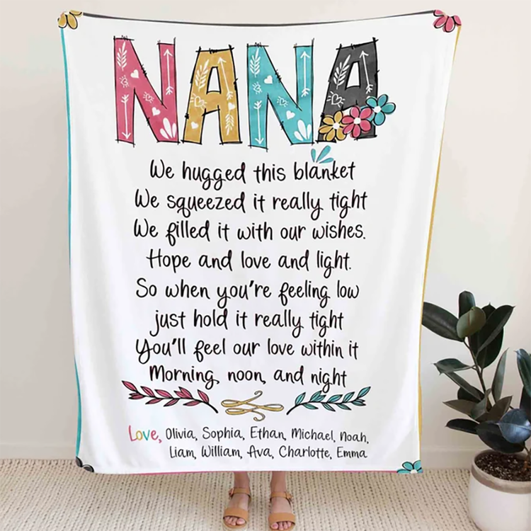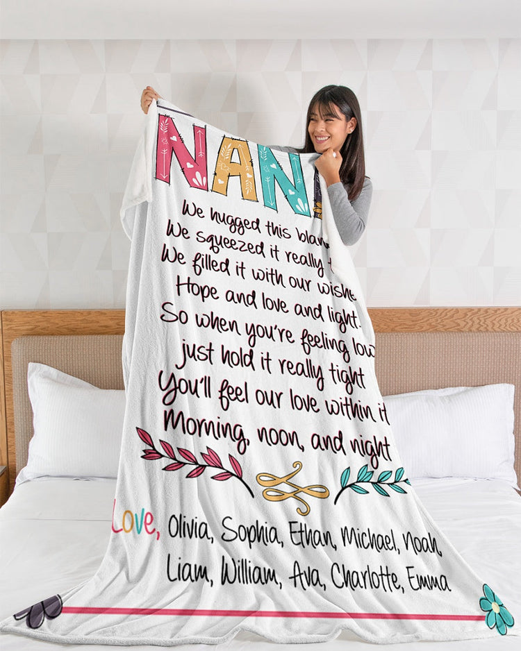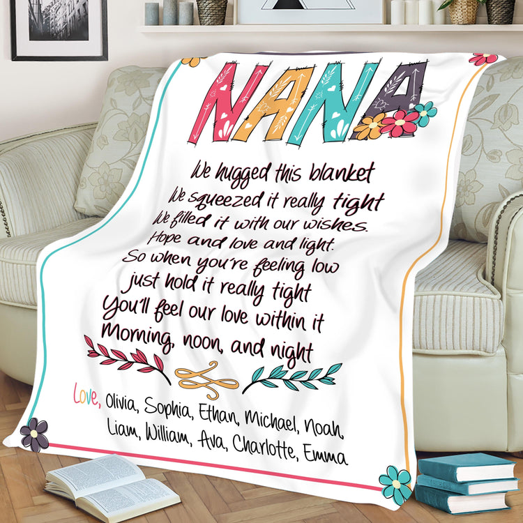 Chillever - Personalized Nana Blanket, Nana Blanket With Grandkids Names, Nana We Hugged This Blanket