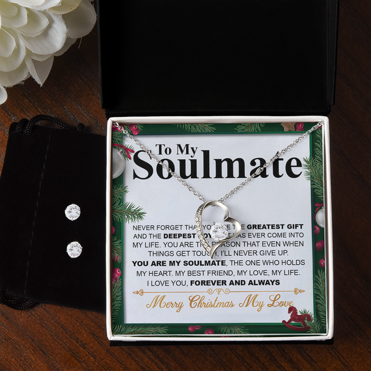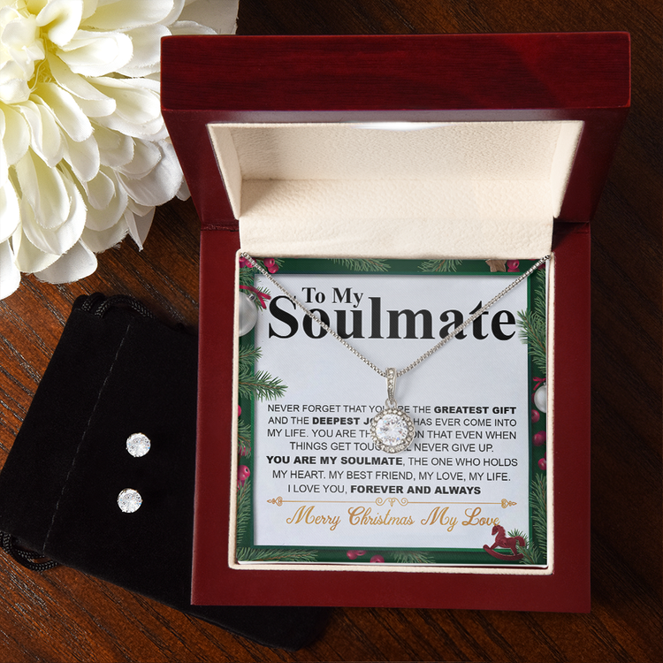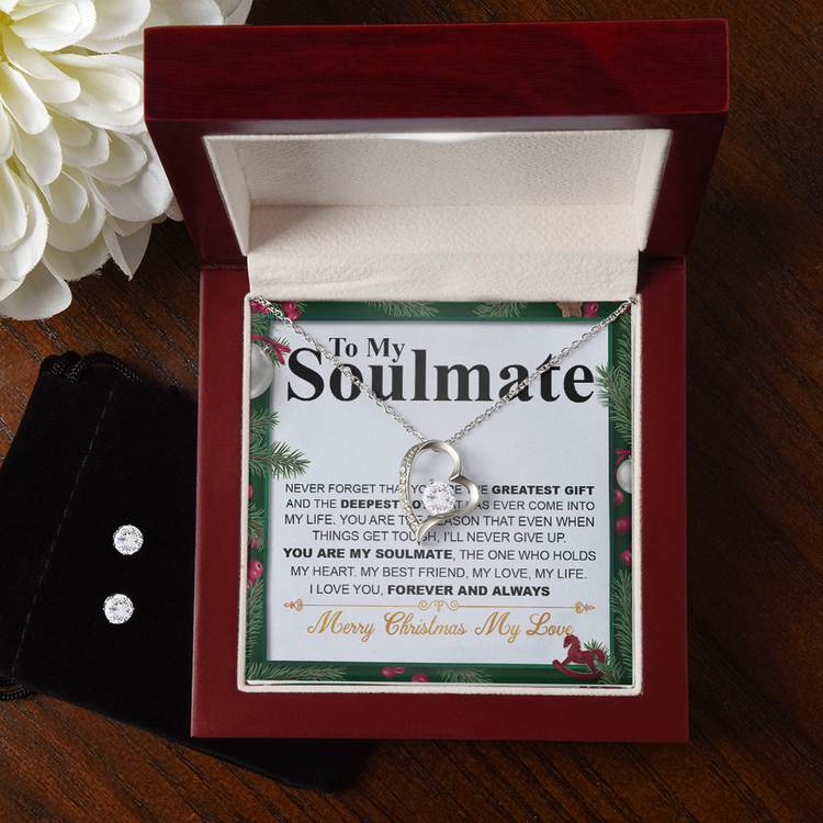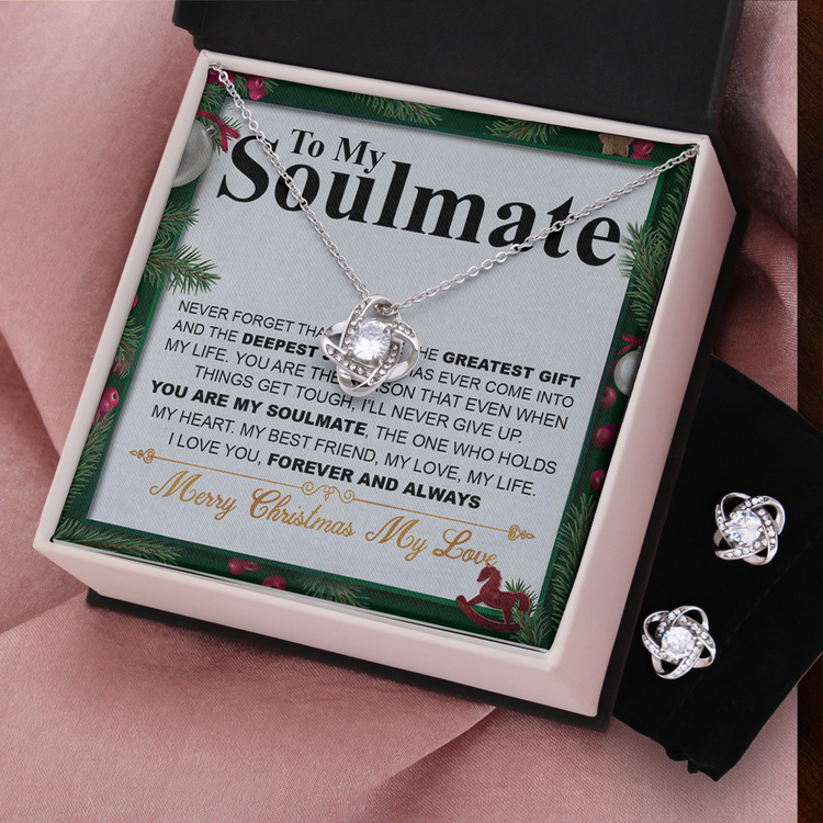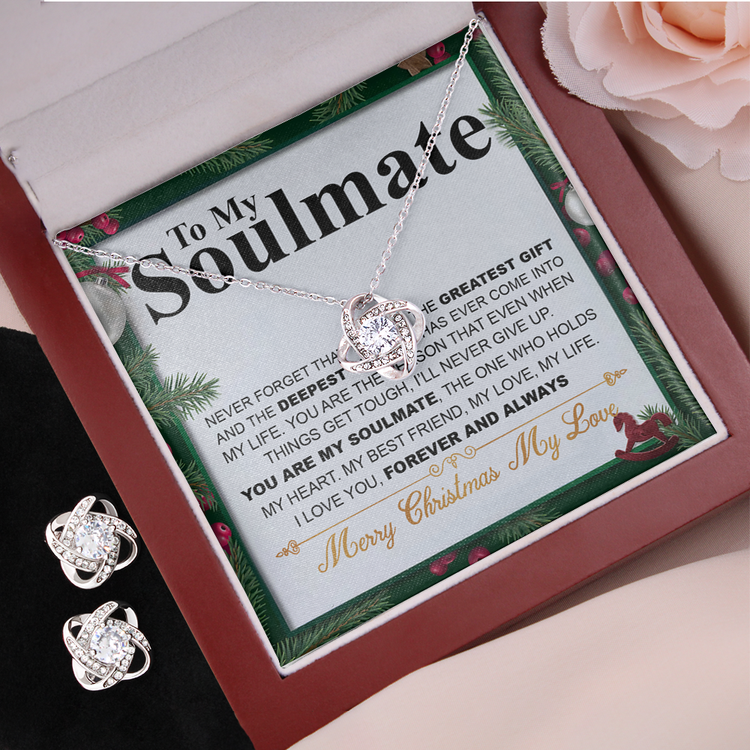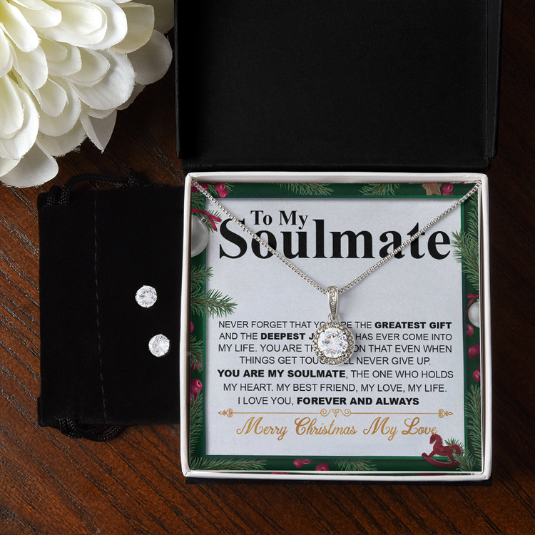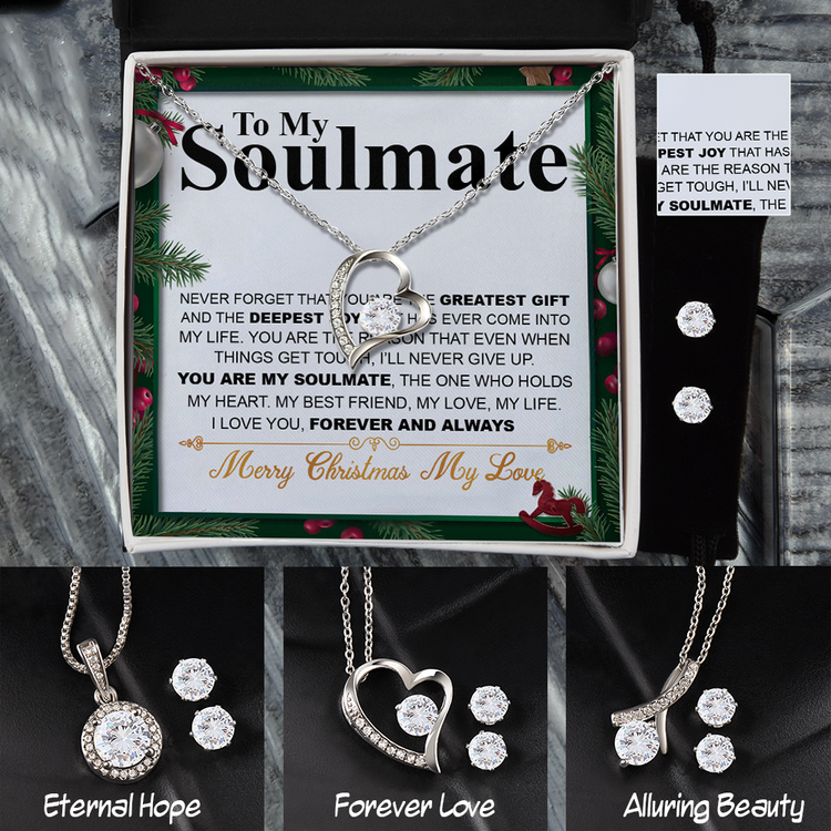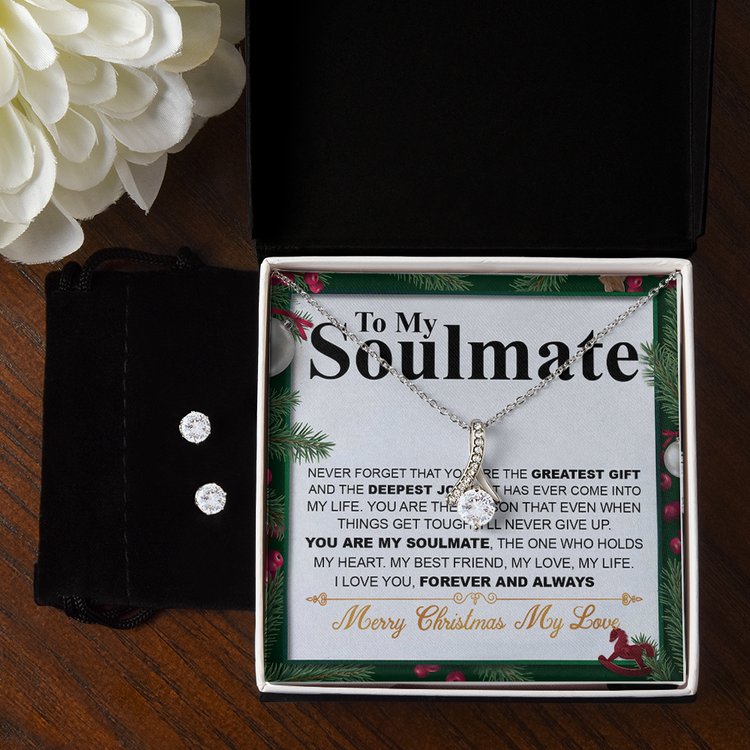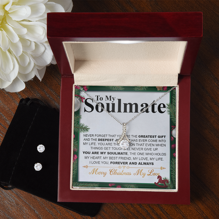 Christmas 14K White Gold Jewelry Set Gift To My Soulmate, Christmas Gift For Her, Necklace And Earrings Set, Jewelry Gift For Wife Or Girlfriend