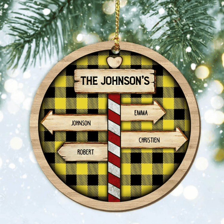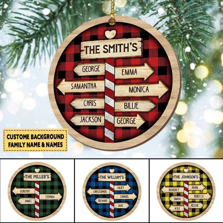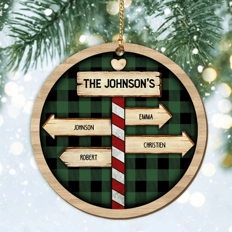 Christmas Family Members with Plaid Pattern Wood Ornament for Home Decor
