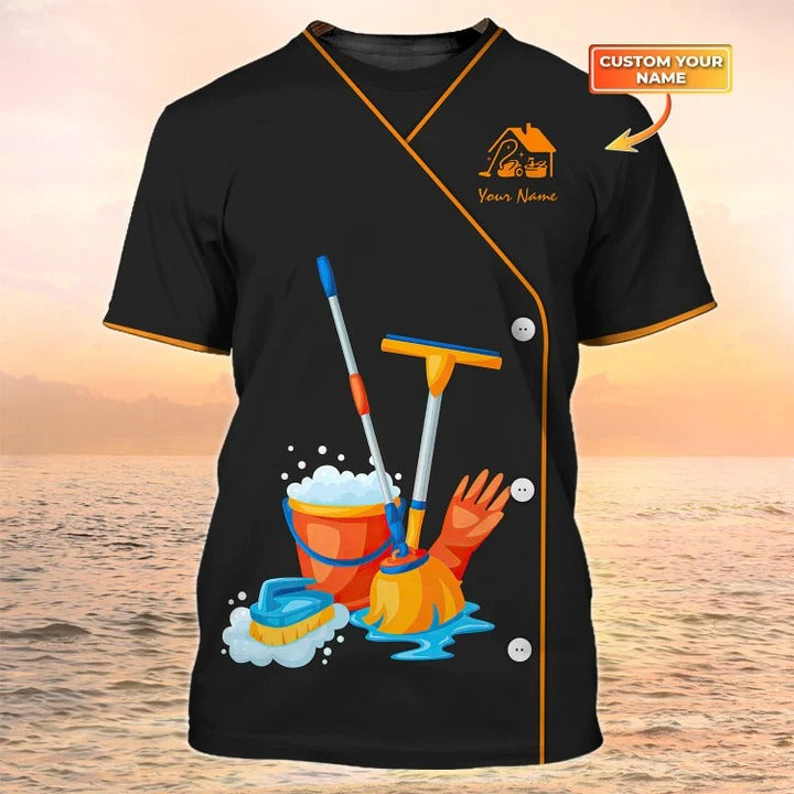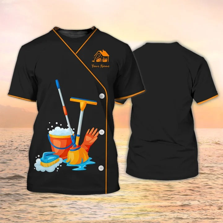 Cleaning Service 3D All Over Print T shirts Housekeeping Tools Custom Shirt Maid Uniform Black