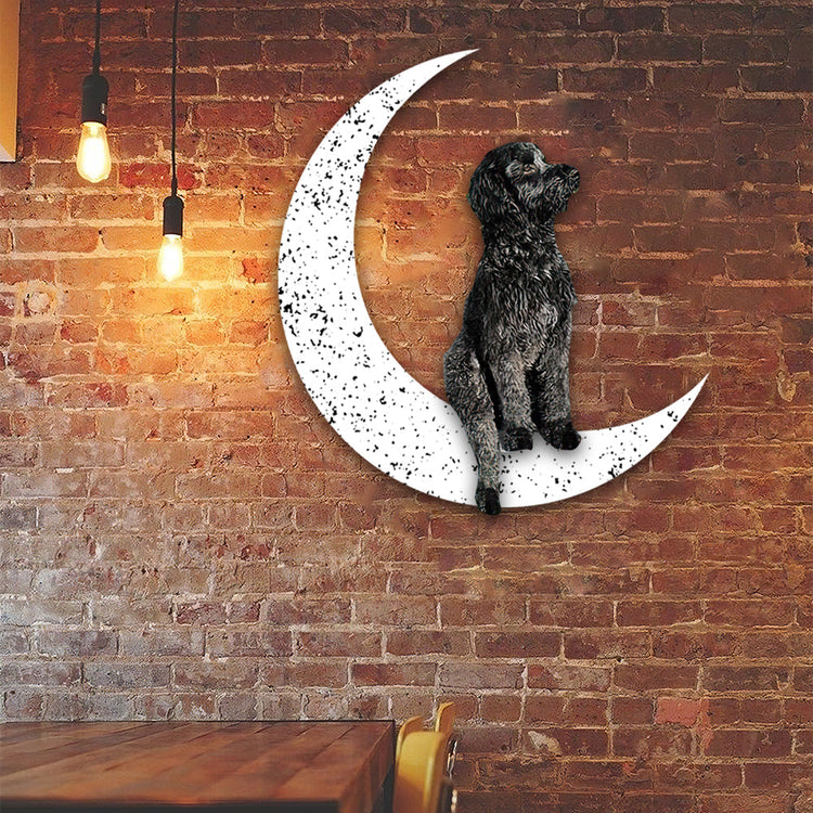 Dog Metal Sign Black Goldendoodle Sit On The Moon Dog Wall Sign Wall Art Gift for Dog Lover