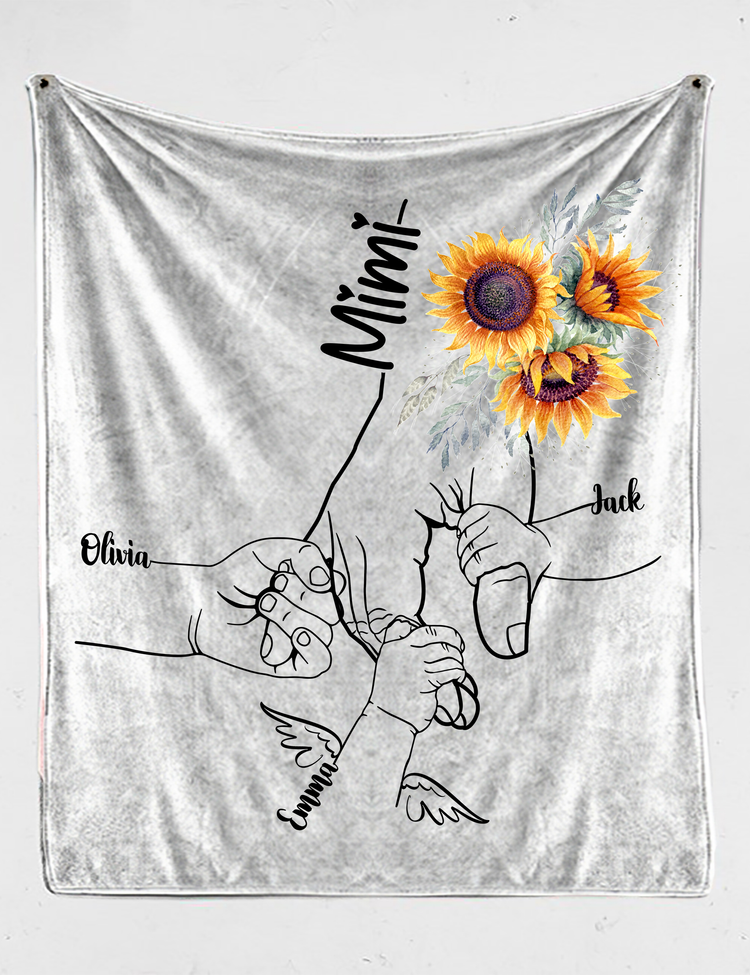 Mimi Hands Grandkids Sunflower Blanket