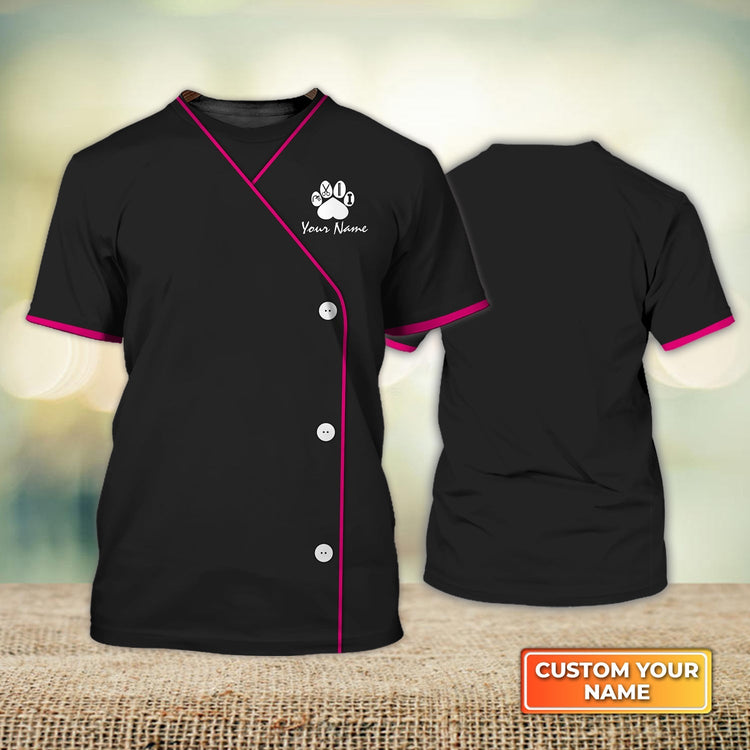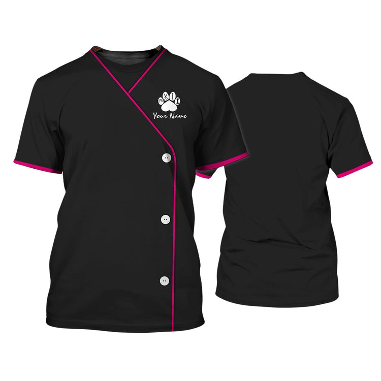 Custom 3D Groomer Shirt Men Women Paw My Craft Dog Groomer Pet Groomer Uniform Pink Salon Pet