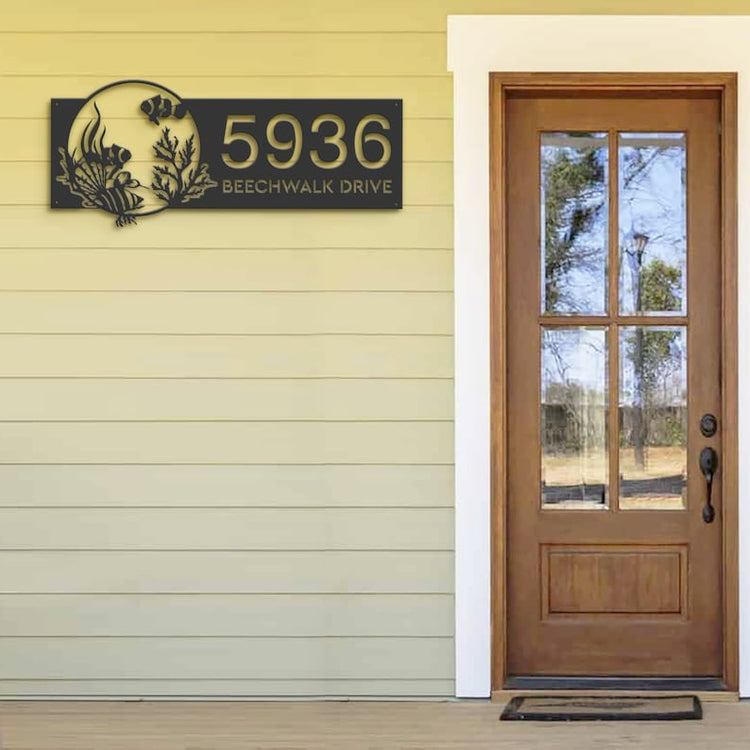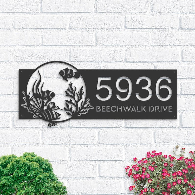 Custom Address Metal Sign, Monogram Personalized Clownfish Sea Life Address Sign Custom Metal Signs, new House Decor Gift For Clownfish Lovers