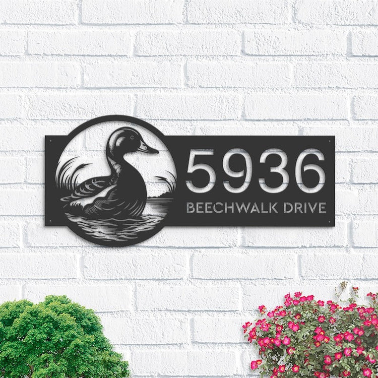 Custom Address Metal Sign, Monogram Personalized Duck Loon Address Sign Custom Metal Signs