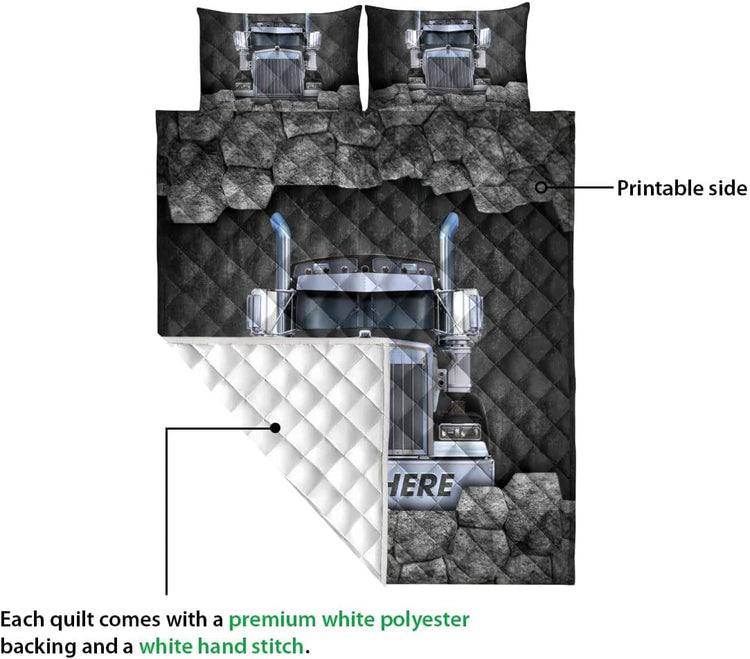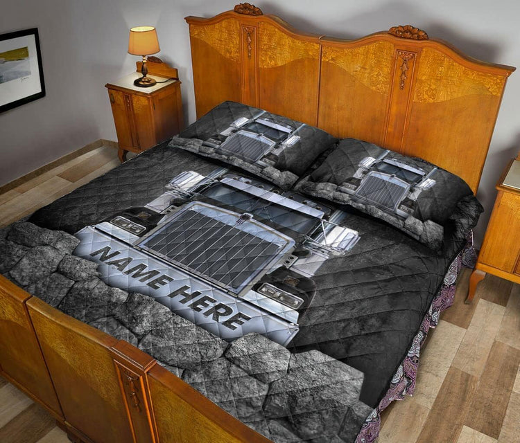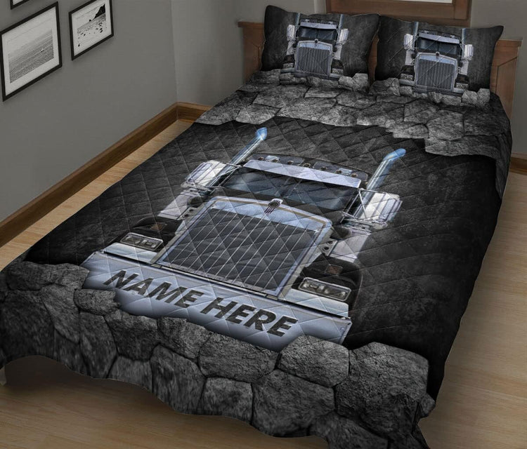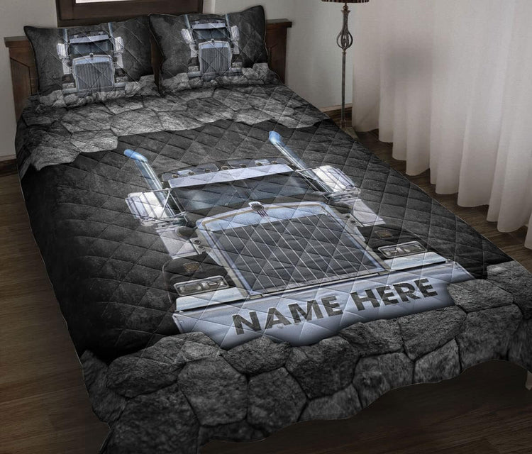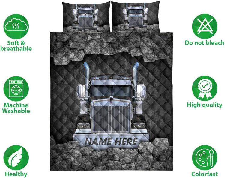 Custom Black Truck Trucker Truck Driver Gift Crack Pattern Personalized Name Quilt Blanket & Pillowcases, Quilts Bedding Set & Pillow Cover, King Queen Double Twin Throw Full Size Bedspread Bed Sets