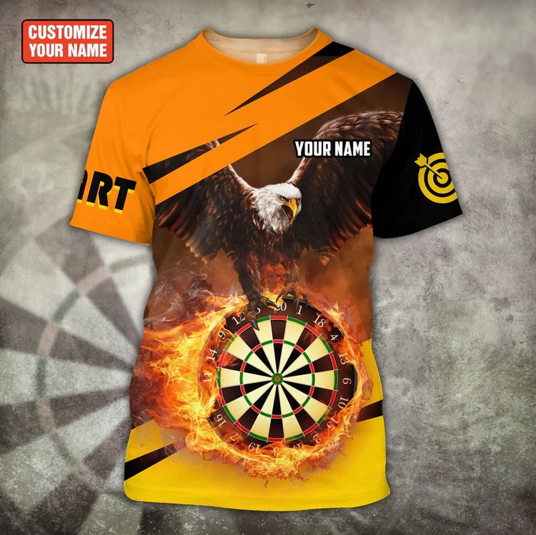 Custom Eagle Dart Shirt, 3D Printed Eagle Flying On Fire Dart Board Tshirt, Dart Gift