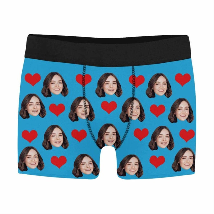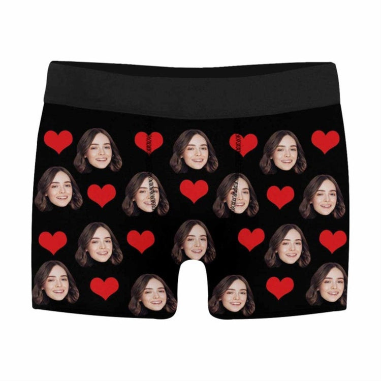 Custom Face on Love Heart Men's Boxer Briefs for Husband or Boyfriend - Personalized Underwear Shorts with Photo Anniversary/Birthday