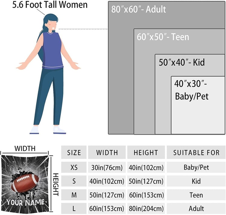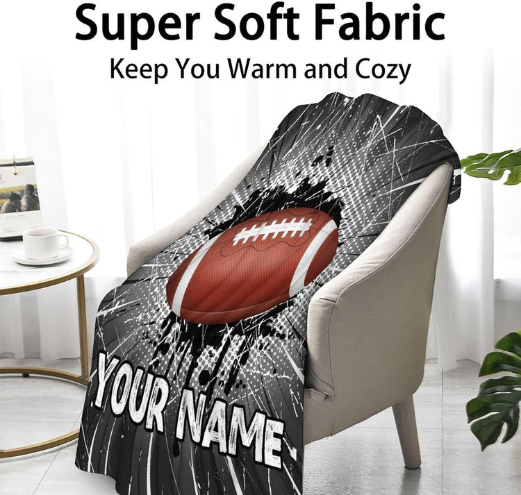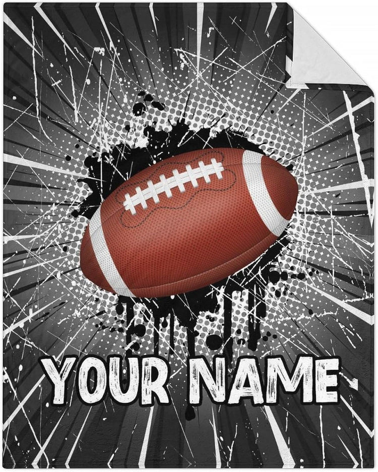 Custom Football Blanket Gifts with Name - Sports Throw Blanket for Football Lover, Kids, Adults, Teens, Girls & Boys - Blue Print Soft Fuzzy Blankets for Couch, Sofa & Bed