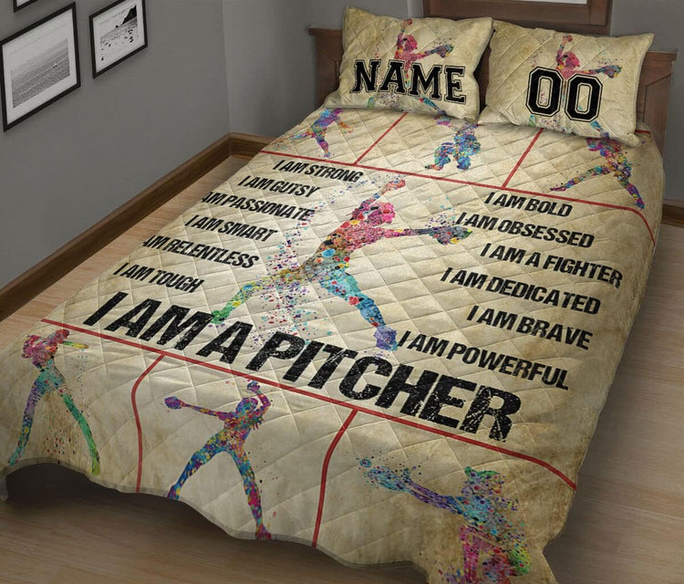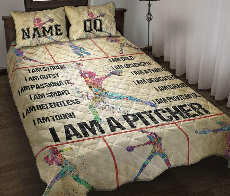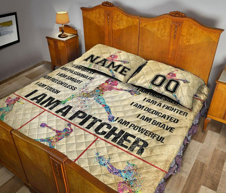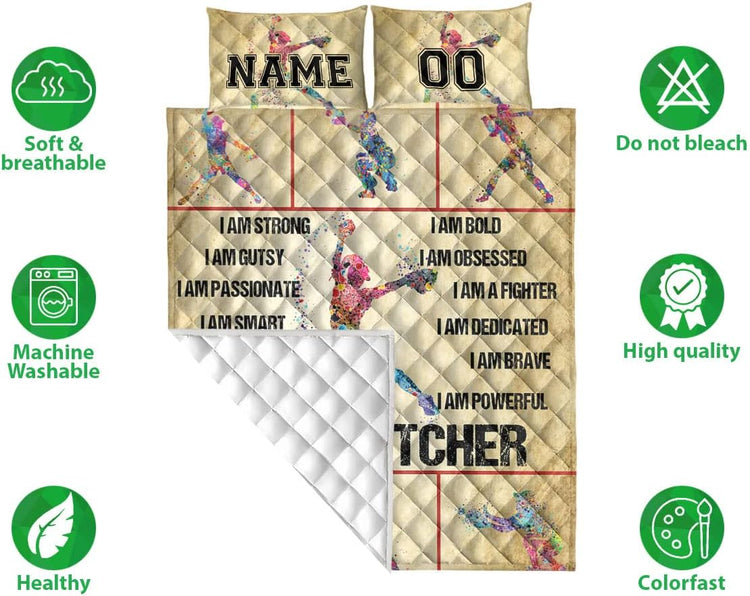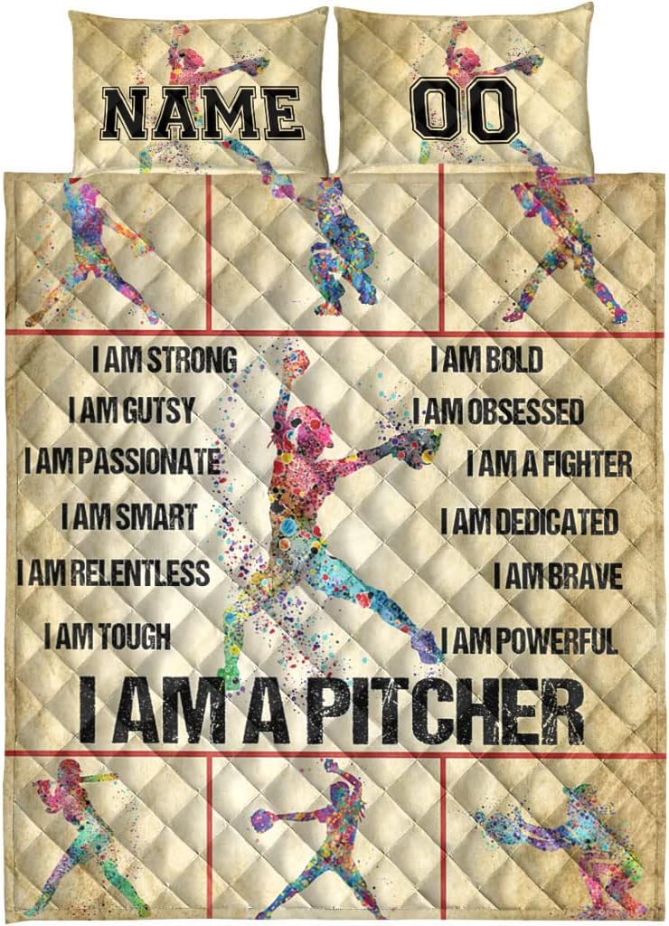 Custom Softball Pitcher Gift for Daughter Personalized Name Number Quilt Blanket & Pillowcases, Quilts Bedding Set & Pillow Cover, King Queen Double Twin Throw Full Size Bedspread Bed Sets