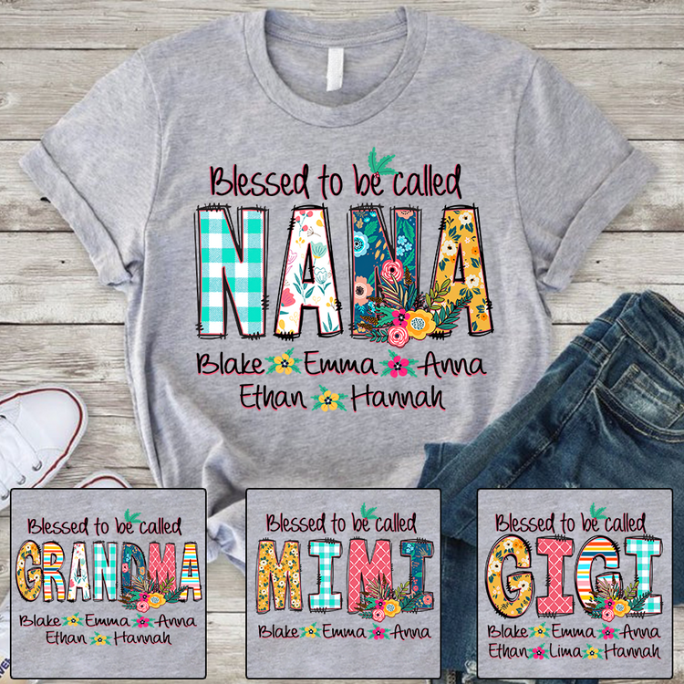 Floral Doodle Nana And Grandkids VT01N T-Shirt