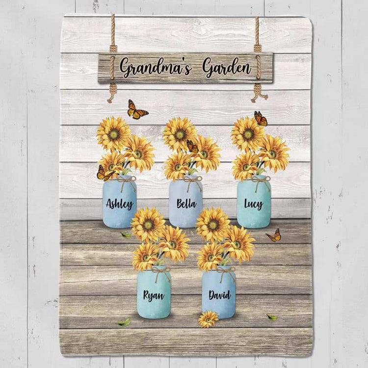 Grandma‘s Garden Sunflower Vase Personalized Fleece Blanket