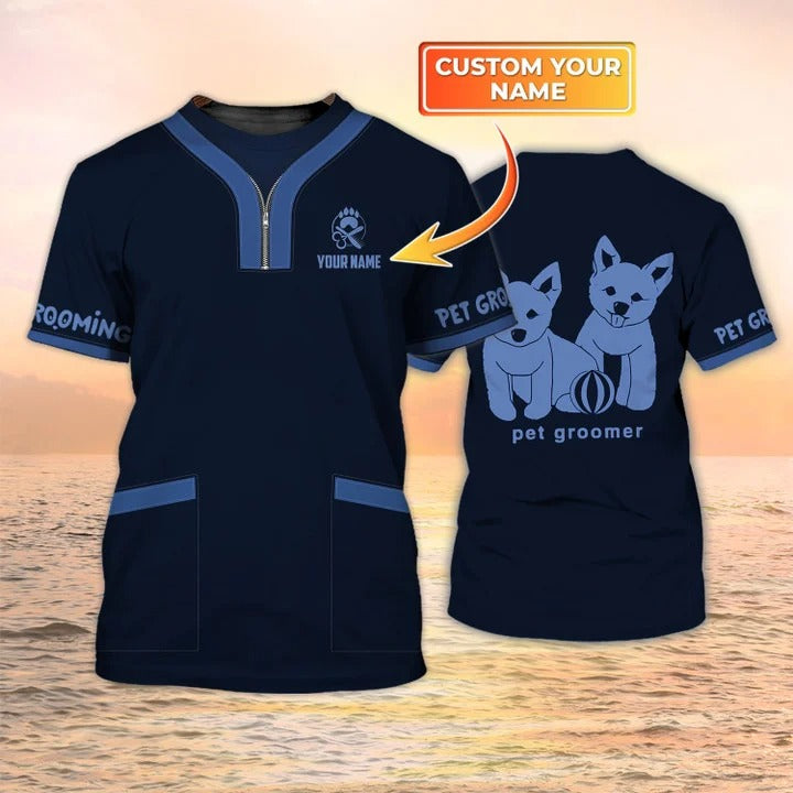 Dog Groomer AppareI American Groomer Personalized Name 3D Tshirt, Gift For Pet Groomer