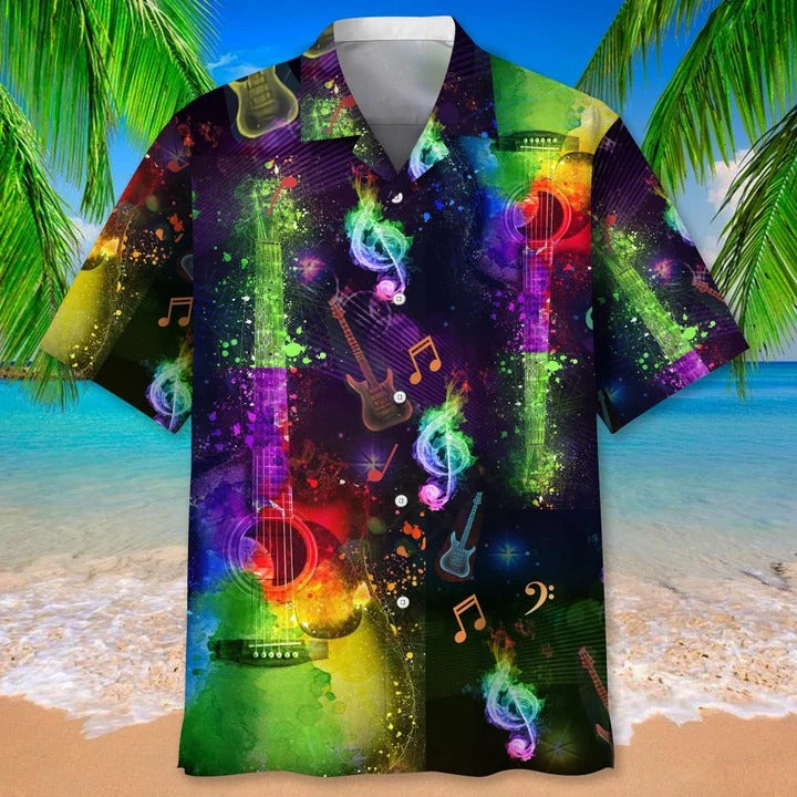 Guitar Color Hawaiian Shirt, Guitarist Man Hawaiian Beach Shirts, Musican Guitar Hawaii Aloha Shirt