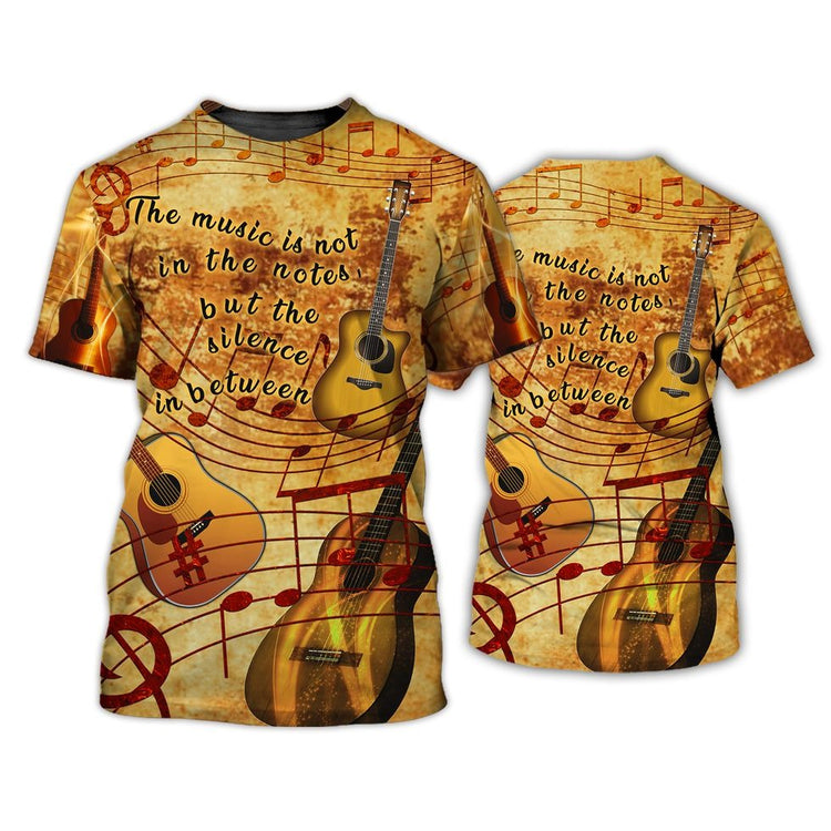 Guitar The Music Is In The Silence 3D Tshirt, 3D All Over Print Guitar Shirt