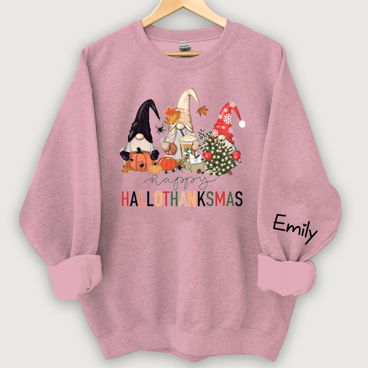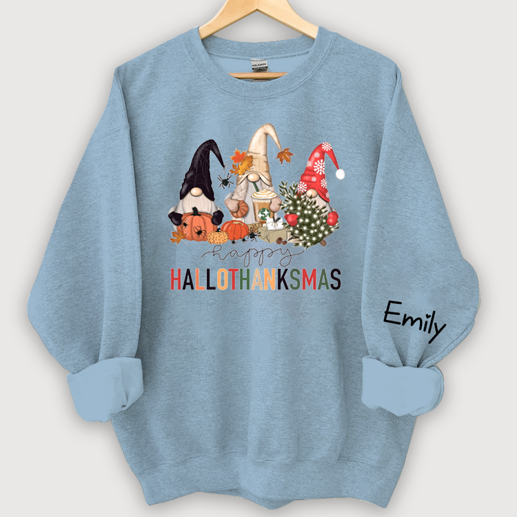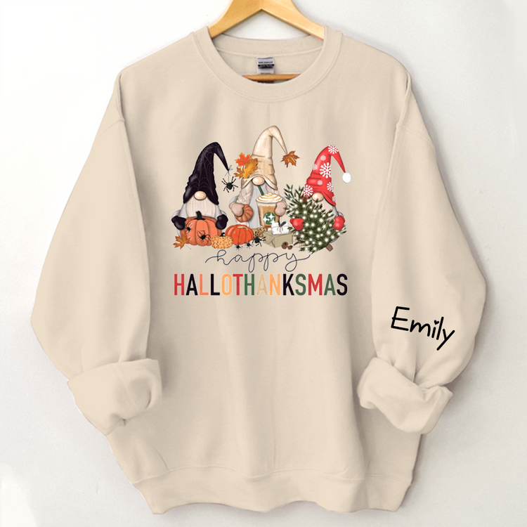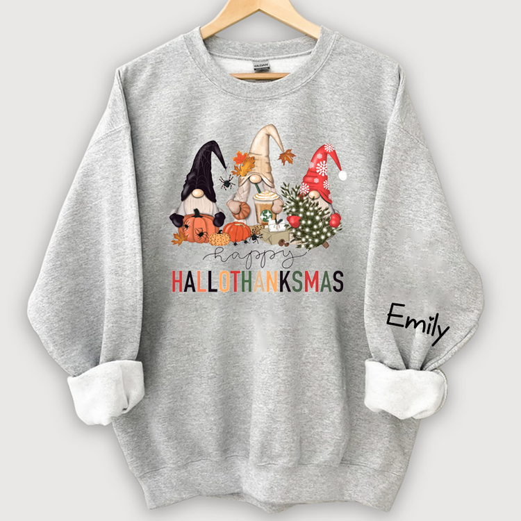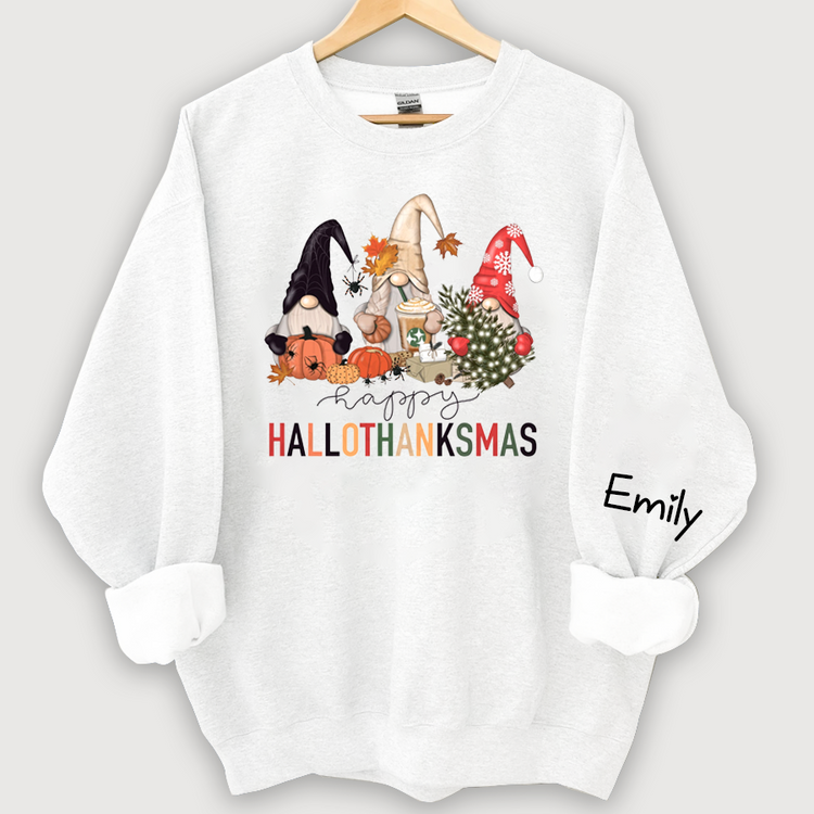 Hallo Thanksmas, Merry Christmas, Happy Halloween Sweatshirt 2