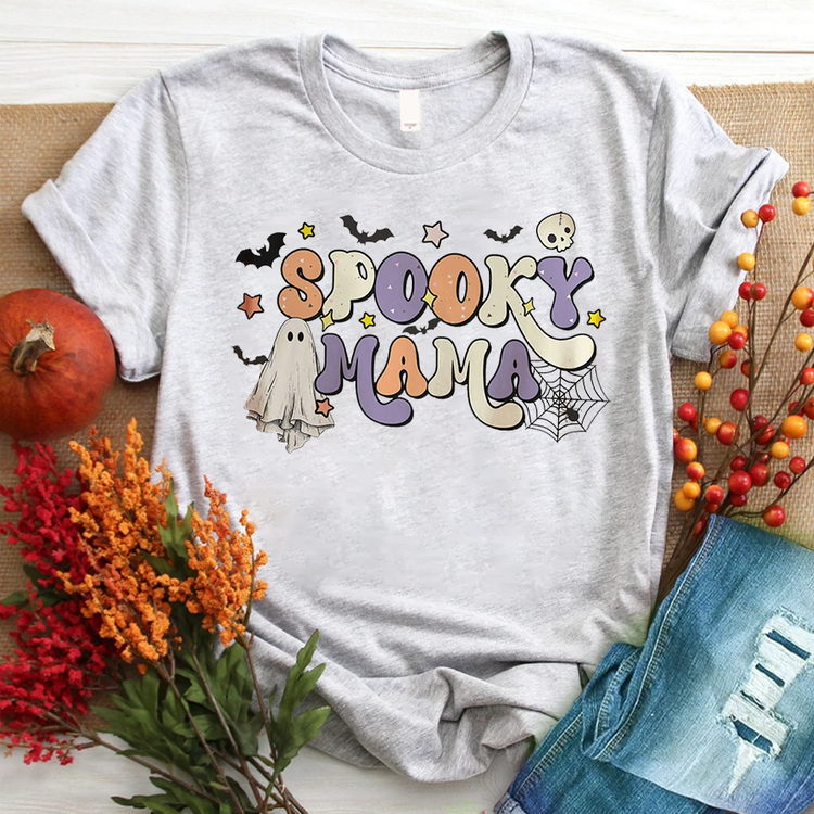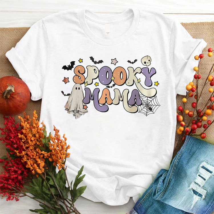 Halloween Spooky Shirt For Mom, Retro Spooky Mama T-shirt, Spooky Mom T - Shirt