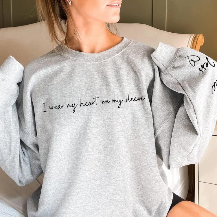 I Wear My Heart on My Sleeve - Custom Women Sweatshirt, with Names on the Sleeve