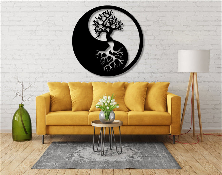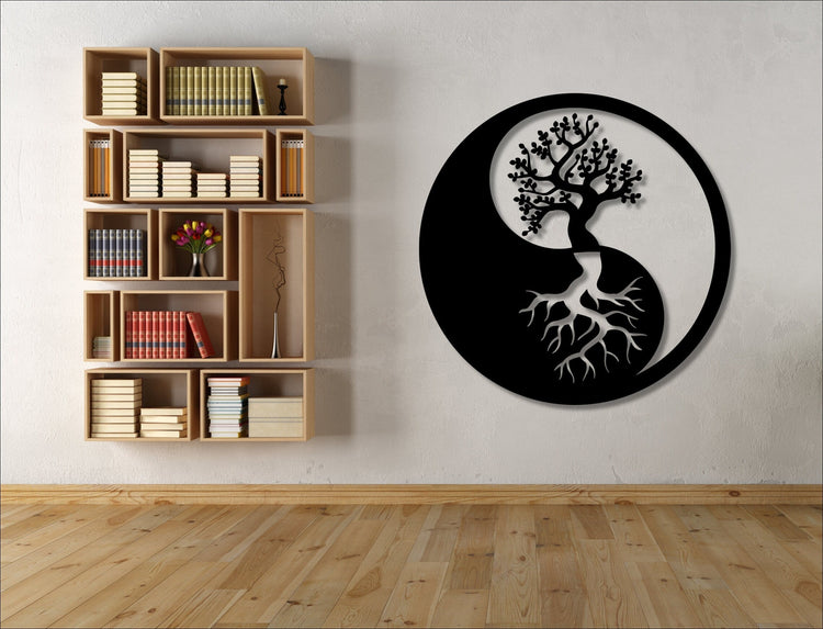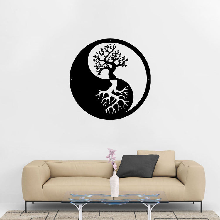 Metal Yin Yang Art Taoism Wall Art Tree Of Life Yin Yang Large Steel Weatherproof Circle
