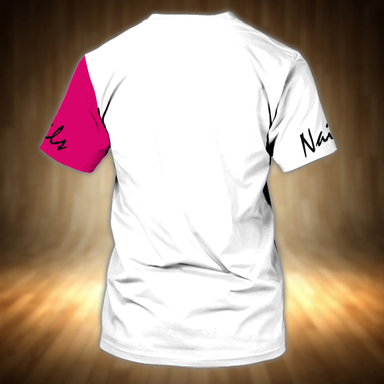 Personalized 3D Tshirt Nail Technician Shirts Manicurist Gift, White & Pink Tad Shirt For Her Him