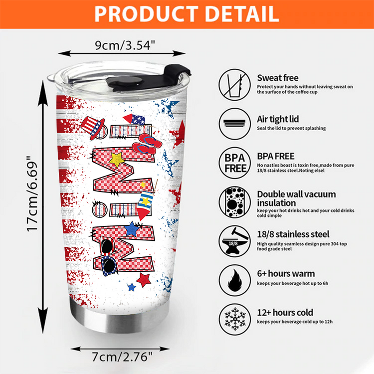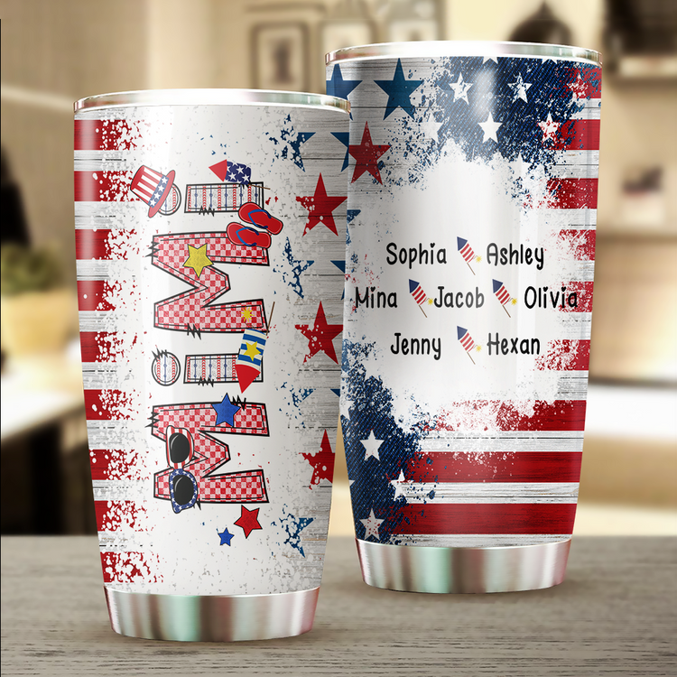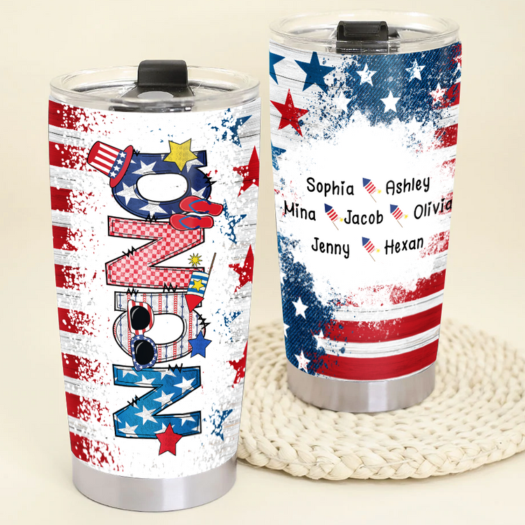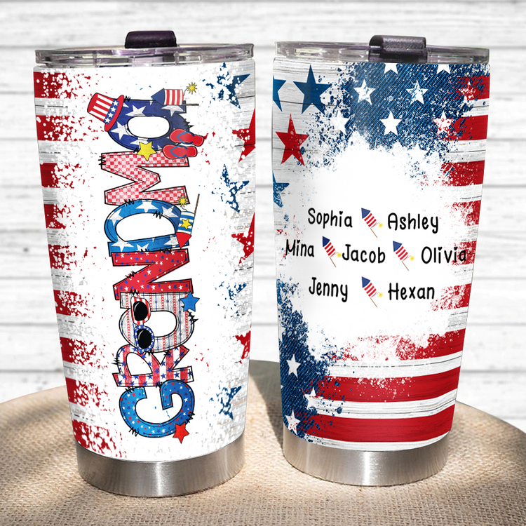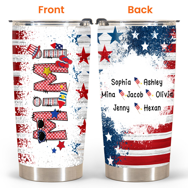 Patriotic Doodle 4th Of July Mimi And Grandkid CTH01, Tumbler Cup with Lid, Double Wall Vacuum Thermos Insulated Travel Coffee Mug