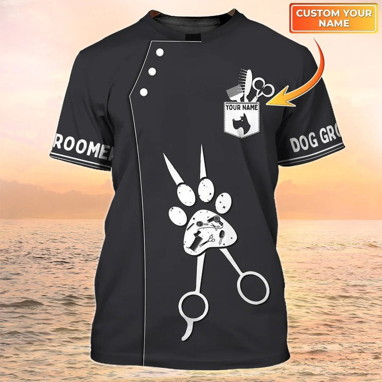 Personalized 3D All Over Print Black Dog Groomer Shirt Men Women, Paw Dog Groomer, Grooming Apparel