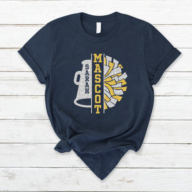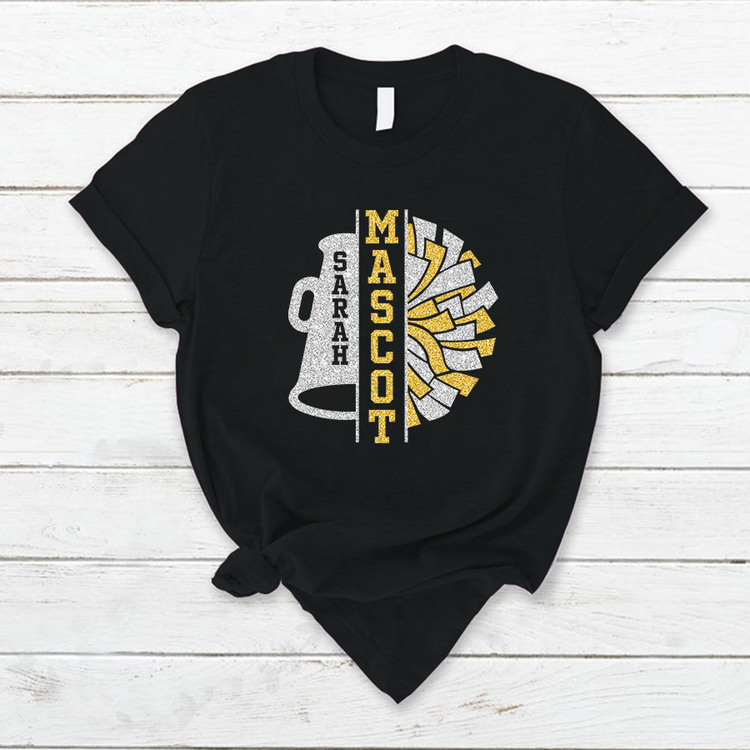 Personalized Cheerleader Shirt, Cheer Pom Poms Shirt with Name, Cheerleading Shirt, Cheer Squad Gift for Girl, Cheer Team T - Shirt Glitter