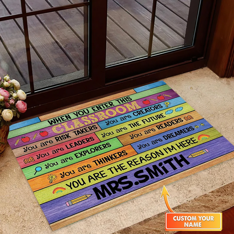 Personalized Classroom Welcome Doormat, Classroom Door Mat School Teacher Door Rug