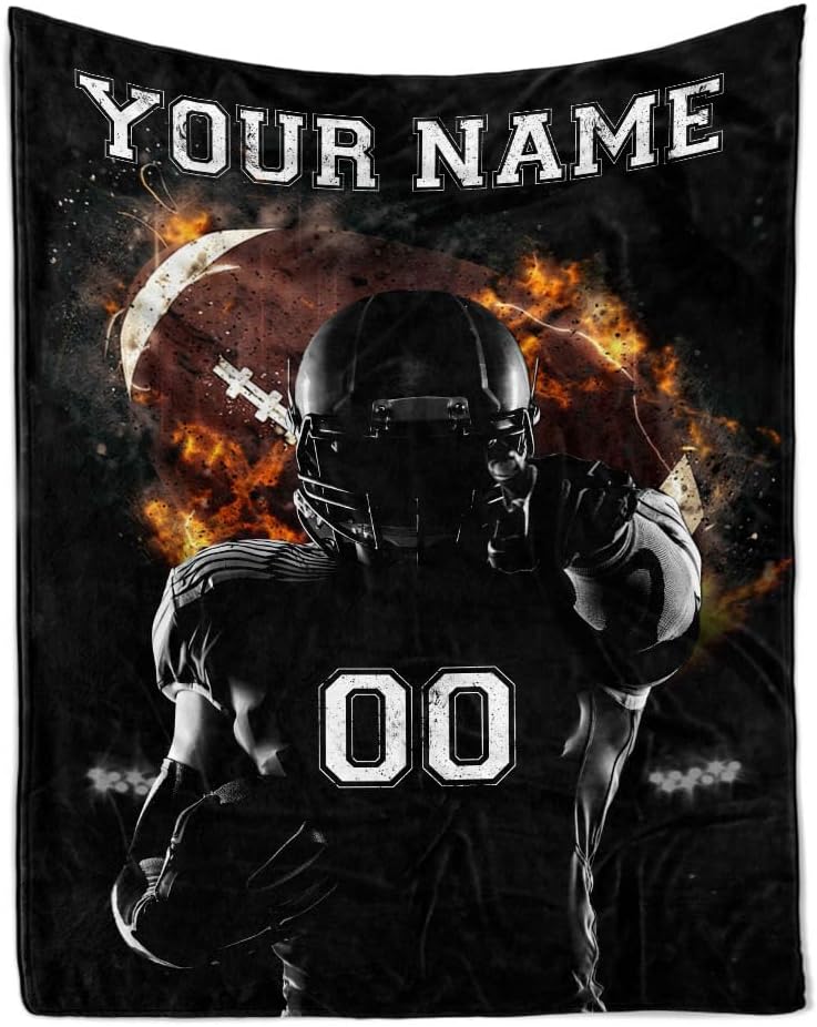 Personalized Football Blanket & Throws, Custom Football Senior Night Gifts 2024 for Boys, Players, Football Gifts, Football Fleece Blanket for Football Players